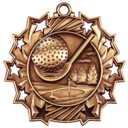 2 1/4" Bronze Golf Ten Star Medal
